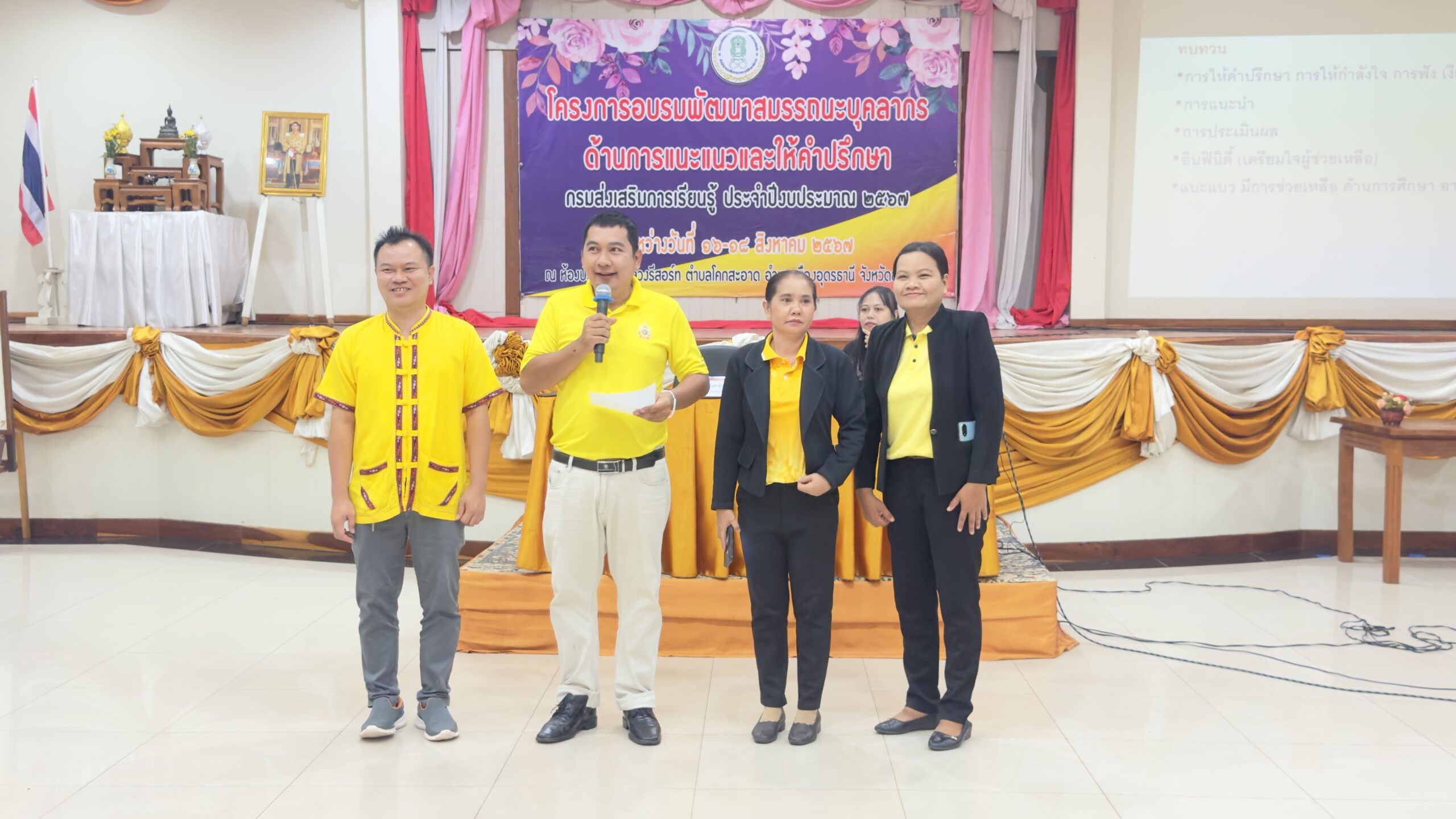 วันที่ 16-18 สิงหาคม 2567 คณะครู สกร.ระดับอำเภอกุมภวาปี เข้าร่วมโครงการอบรมพัฒนาสมรรถนะบุคลากร ด้านการแนะแนวและให้คำปรึกษา กรมส่งเสริมการเรียนรู้ ประจำปีงบประมาณ 2567 ณ โรงแรม ฟ้าหลวง รีสอร์ท ตำบลโคกสะอาด อำเภอเมืองอุดระธานี จังหวัดอุดรธานี